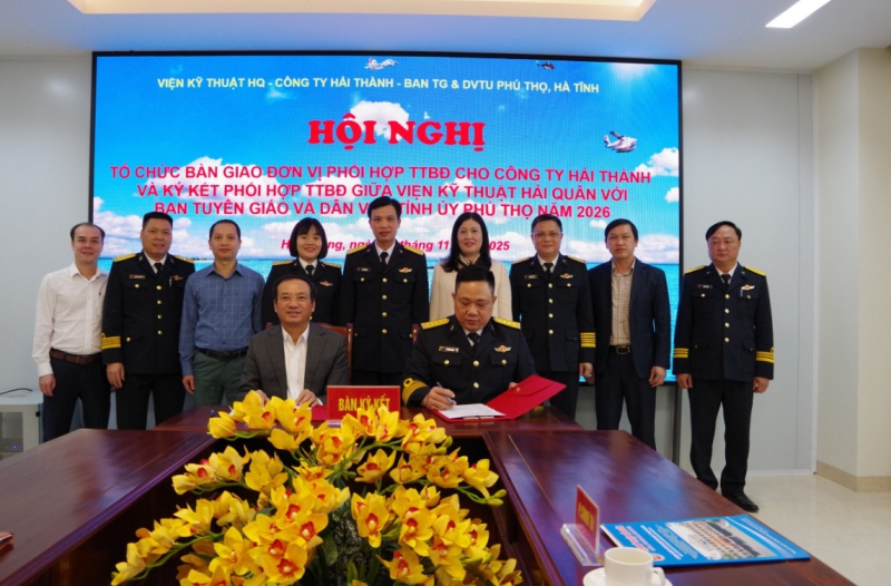 Lễ ký kết phối hợp tuyên truyền giữa Viện Kỹ thuật Hải quân và Ban Tuyên giáo và Dân vận Tỉnh ủy Phú Thọ đánh dấu bước phát triển trong công tác tuyên truyền biển, đảo, góp phần củng cố niềm tin, tăng cường đoàn kết quân - dân, hướng tới mục tiêu bảo vệ vững chắc chủ quyền biển đảo thiêng liêng của Tổ quốc.