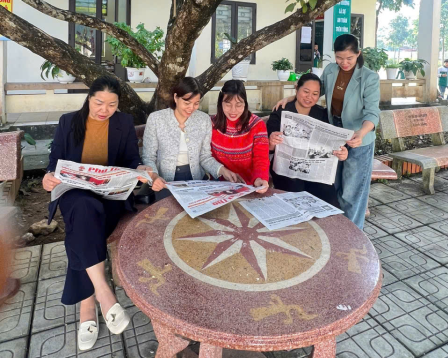 Các cô giáo Trường Tiểu học Tân Phú cùng dành thời gian đọc báo Đảng