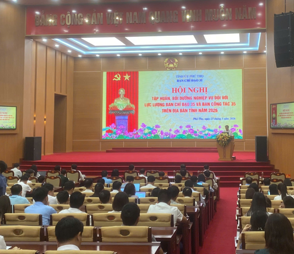 Ngày 26-27/3/2026, Ban Chỉ đạo 35 Tỉnh uỷ tổ chức hội nghị tập huấn, bồi dưỡng nghiệp vụ lực lượng Ban Chỉ đạo 35 và Ban Công tác 35 trên địa bàn tỉnh năm 2026 tại 2 khu vực Phú Thọ và Vĩnh Phúc cũ và khu vực Hòa Bình cũ.