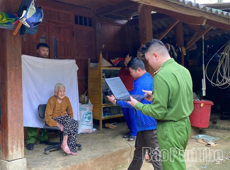 Công an xã Tân Pheo hỗ trợ làm căn cước tại nhà cho công dân già yếu, đi lại khó khăn.