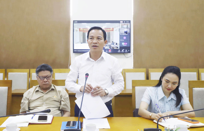 Đại diện lãnh đạo Liên đoàn Lao động tỉnh báo cáo làm rõ thêm những kết quả đạt được của tổ chức Công đoàn trong quý I/2026