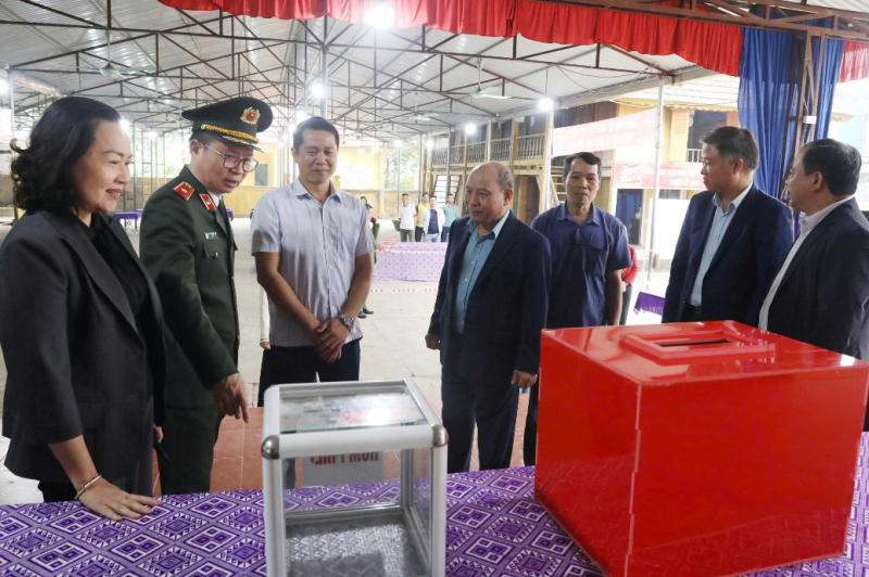 Cùng đi có các đồng chí: Nguyễn Thị Cẩm Phương - Ủy viên Ban Thường vụ Tỉnh ủy, Phó Chủ tịch HĐND tỉnh, Phó Chủ tịch Ủy ban Bầu cử tỉnh; Thiếu tướng Nguyễn Minh Tuấn - Ủy viên Ban Thường vụ Tỉnh ủy, Giám đốc Công an tỉnh; Nguyễn Văn Thắng - Ủy viên Ban Thường vụ Tỉnh ủy, Chánh Thanh tra tỉnh; lãnh đạo Văn phòng Đoàn đại biểu Quốc hội và HĐND tỉnh.