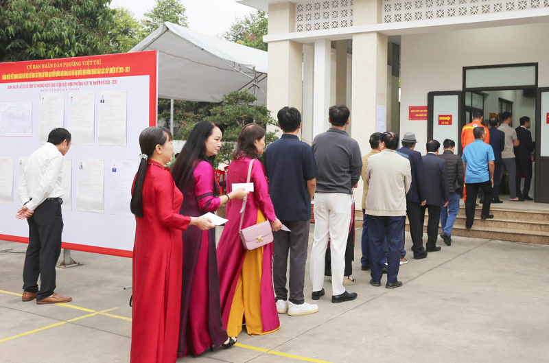 Ngày 15/3/2026, cùng với cử tri cả nước, hơn 2,7 triệu cử tri tỉnh Phú Thọ nô nức tham gia bầu cử ĐBQH khóa XVI và đại biểu HĐND các cấp, nhiệm kỳ 2026 - 2031. Từ trung tâm đô thị đến các bản làng vùng cao, từ bệnh viện, doanh trại lực lượng vũ trang đến các khu, cụm công nghiệp đông công nhân của tỉnh, khắp nơi đều rực rỡ cờ hoa, băng rôn, khẩu hiệu chào mừng Ngày hội lớn của toàn dân. Ngay từ sáng sớm, dòng người đi bầu cử nối dài trong không khí trang nghiêm, phấn khởi và đầy trách nhiệm, thể hiện niềm tin của cử tri Đất Tổ đối với việc lựa chọn những đại biểu tiêu biểu, xứng đáng đại diện cho ý chí, nguyện vọng của Nhân dân.