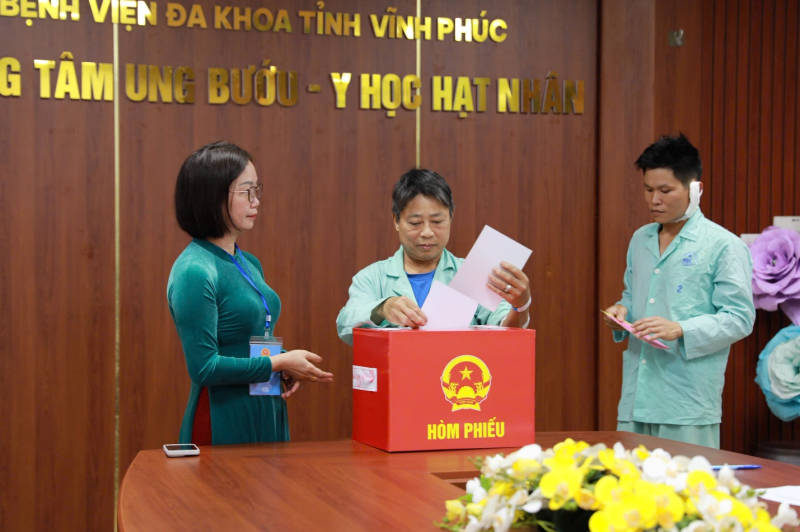 Cùng với lực lượng vũ trang, tại Bệnh viện Đa khoa Vĩnh Phúc, để tạo điều kiện và đáp ứng nguyện vọng của 87 cử tri là bệnh nhân đang điều trị và cán bộ, nhân viên y tế không thể rời vị trí công tác, từ 7 giờ sáng, các thành viên Tổ bầu cử số 35 (khu vực bỏ phiếu số 35, phường Vĩnh Phúc) đã mang hòm phiếu phụ đến từng khoa, phòng. Cử tri được hướng dẫn đầy đủ quy trình và thực hiện quyền bầu cử ngay tại nơi điều trị.