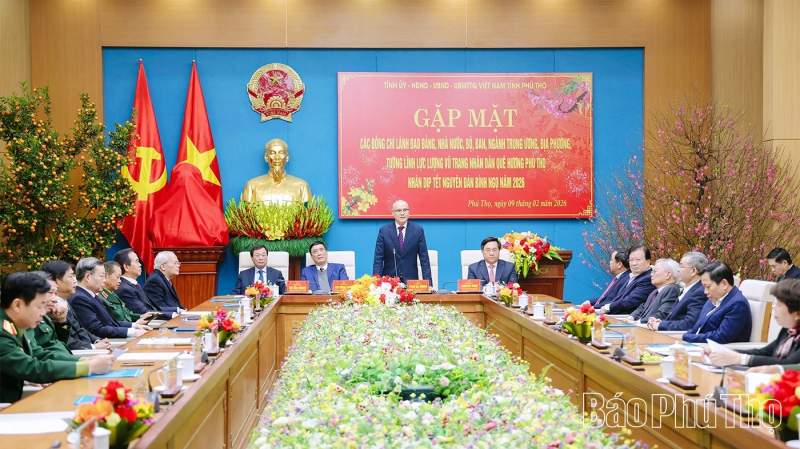 Chiều 9/2, Tỉnh ủy Phú Thọ tổ chức gặp mặt các đồng chí lãnh đạo, nguyên lãnh đạo Đảng, Nhà nước; lãnh đạo các bộ, ban, ngành Trung ương, địa phương và các tướng lĩnh lực lượng vũ trang (LLVT) là người con quê hương Phú Thọ nhân dịp Tết Nguyên đán Bính Ngọ 2026.