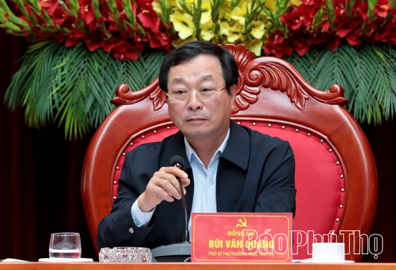 Phó Bí thư Thường trực Tỉnh ủy Bùi Văn Quang chủ trì hội nghị.