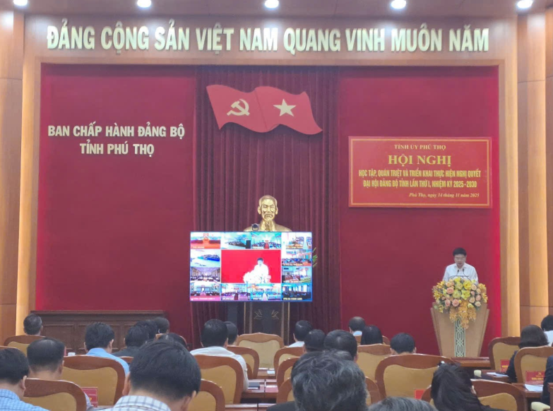 Theo đó, nội dung nghiên cứu, học tập, quán triệt, tuyên truyền tập trung vào những nội dung cốt lõi, những vấn đề mới trong văn kiện Đại hội; Nghị quyết Đại hội đại biểu Đảng bộ tỉnh Phú Thọ lần thứ I, nhiệm kỳ 2025 - 2030; Chương trình hành động thực hiện Nghị quyết. Đối tượng nghiên cứu, học tập, quán triệt, tuyên truyền toàn thể cán bộ, đảng viên có trách nhiệm nghiên cứu, học tập, quán triệt, tuyên truyền Nghị quyết; Nhân dân được tuyên truyền, phổ biến những nội dung cốt lõi, những vấn đề mới trong các văn kiện Đại hội. Việc nghiên cứu, học tập, quán triệt, tuyên truyền Nghị quyết kết hợp tự nghiên cứu với nghe phổ biến, quán triệt. Ban Thường vụ Tỉnh ủy tổ chức Hội nghị nghiên cứu, học tập, quán triệt, tuyên truyền và triển khai thực hiện Nghị quyết theo hình thức trực tiếp kết hợp với trực tuyến, kết nối đường truyền từ tỉnh tới các điểm cầu của các xã, phường, các Đảng ủy trực thuộc Tỉnh ủy, với 598 điểm cầu và 38.959 đại biểu tham dự. Báo và Phát thanh, truyền hình Phú Thọ tổ chức truyền hình trực tiếp Hội nghị quán triệt và triển khai thực hiện Nghị quyết. Cấp ủy các địa phương, cơ quan, đơn vị tiếp tục chỉ đạo và tổ chức học tập nghị quyết bằng hình thức phù hợp cho từng đối tượng cụ thể địa phương, đơn vị, cơ sở và những cán bộ, đảng viên chưa được tham gia học tập tại Hội nghị do Ban Thường vụ Tỉnh uỷ tổ chức.