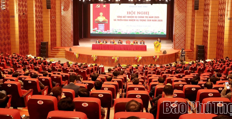 Chiều 29/12, Tỉnh ủy Phú Thọ tổ chức Hội nghị Tổng kết nhiệm vụ chính trị năm 2025, triển khai nhiệm vụ trọng tâm năm 2026. Đồng chí Trương Quốc Huy - Bí thư Tỉnh ủy và các đồng chí Thường trực Tỉnh ủy chủ trì hội nghị. Tham dự có đại diện các Ban xây dựng Đảng Trung ương; các đồng chí Ủy viên Ban Thường vụ Tỉnh ủy, Ủy viên Ban Chấp hành Đảng bộ tỉnh; lãnh đạo các sở, ban, ngành và xã, phường trong tỉnh.