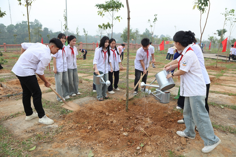 Học sinh xã Hy Cương tham gia trồng cây